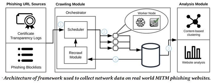 O método desenvolvido pelos pesquisadores envolve um classificador de aprendizado de máquina que utiliza recursos de nível de rede, como impressões digitais TLS e discrepâncias de tempo de rede para classificar sites de phishing hospedados por kits de ferramentas de phishing MitM em servidores proxy reverso. Também envolve uma estrutura de coleta de dados que monitora e rastreia URLs suspeitos de bancos de dados de phishing de código aberto, como OpenPhish e PhishTank , entre outros.